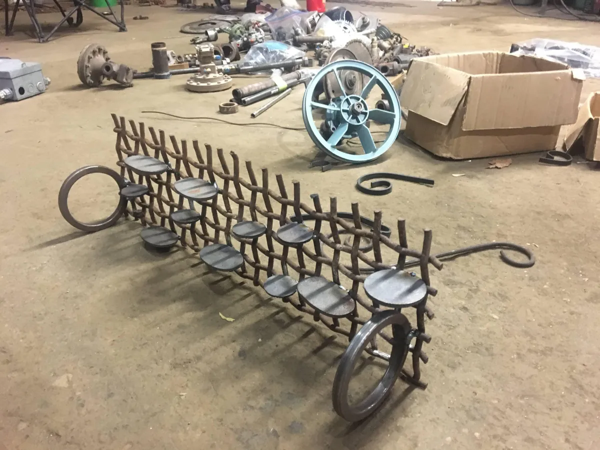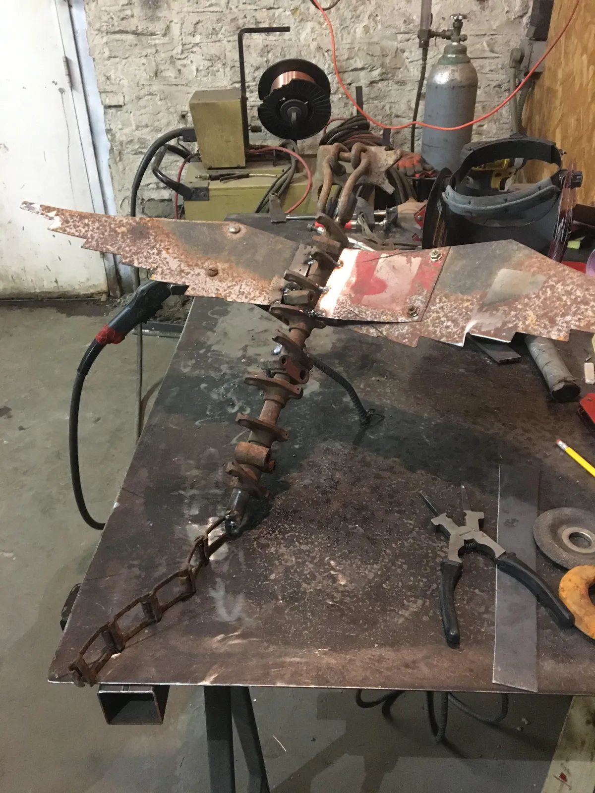 Growing up on a Midwestern dairy and hog farm meant there was always something to fix - or invent. Those early years taught him to see both beauty and utility in every scrap of metal. A tractor seat might become the face of a gargoyle; a fuel tank, the body of a life-sized elephant; a garbage chute, a bulldog mid-snarl.